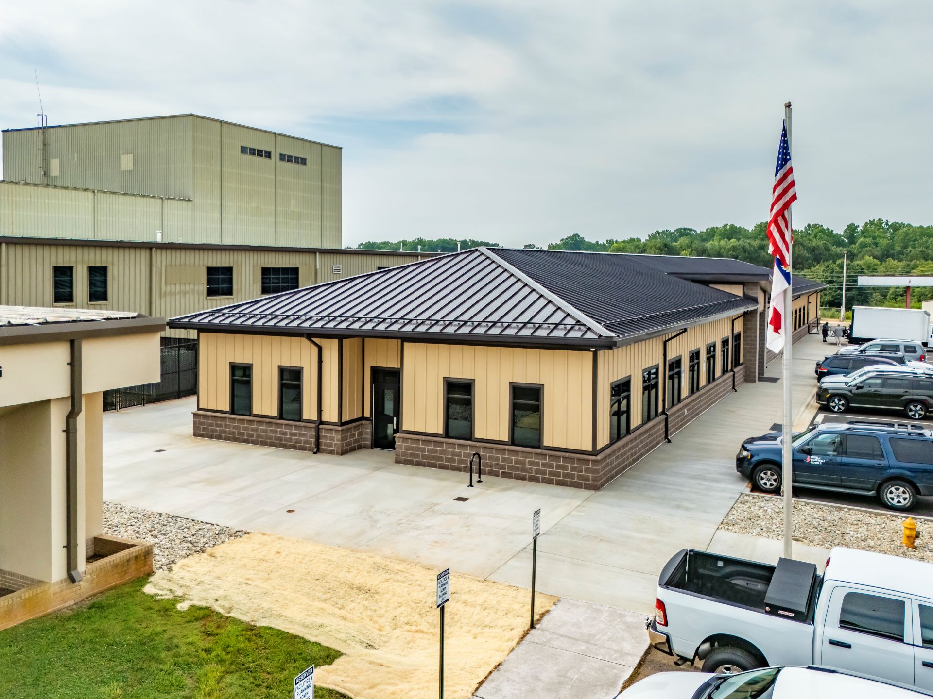 The new Iredell-Statesville School (ISS) Central Office Building is an 11,000 square foot single story office building located adjacent to their existing Facilities and Planning department. This office is designed to centralize the operations of five distinct departments that are currently dispersed across multiple buildings within the district. A covered canopy has been specifically designed to seamlessly connect the existing building with the new office. The collaboration between A+AA and ISS ensured that this new building catered to the expanding demands of the district and its staff. In addition to the design of the new Central Office Building, A+AA worked with ISS to develop a design for the renovated upper and lower mezzanine offices located in the existing facilities and planning building. The renovation project, covering an area of 10,000 square feet, involved the consolidation of various areas and the conversion of a redundant conference room into additional office spaces.